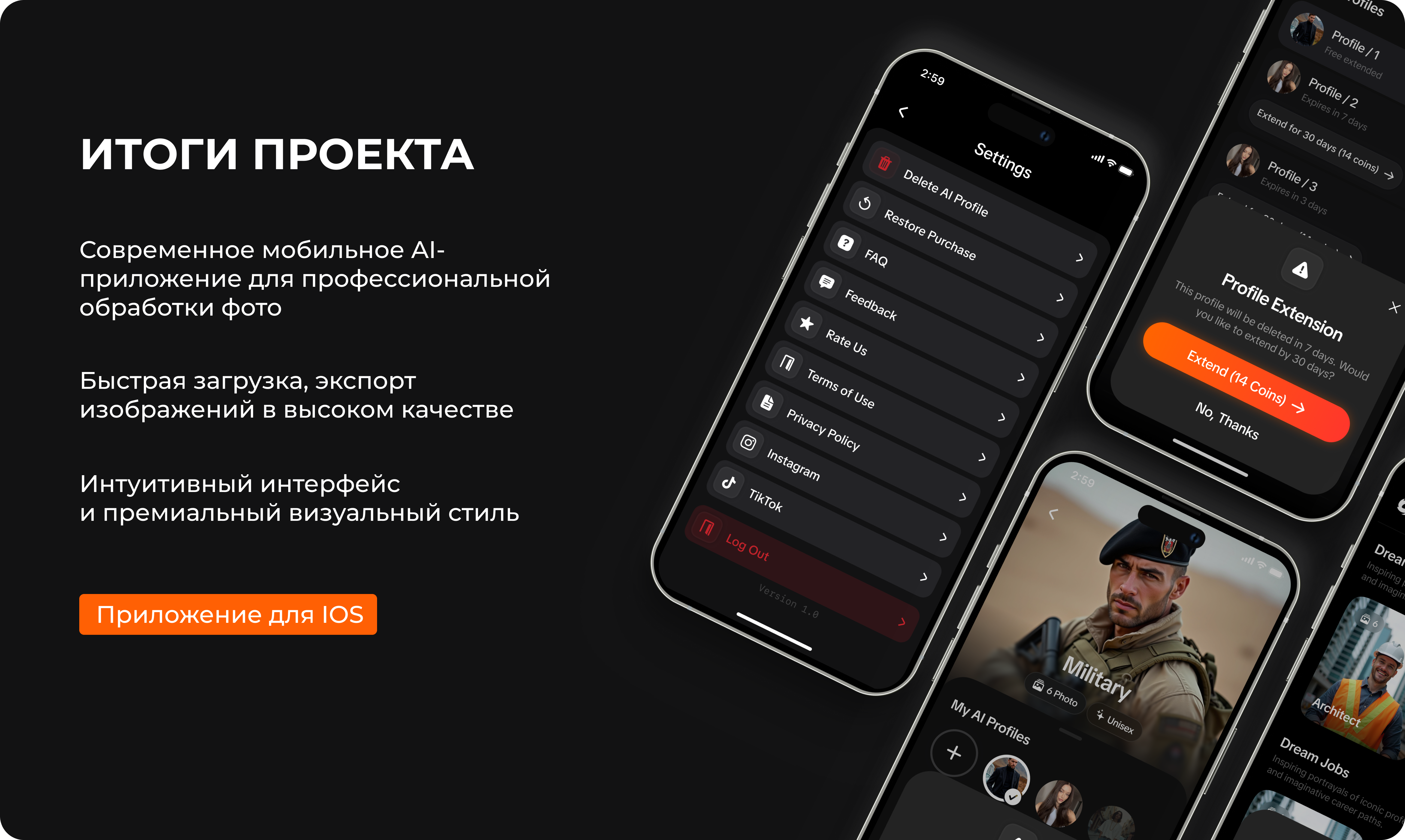 Клиент получил современное мобильное AI-приложение для профессиональной обработки фото. Важными преимуществами проекта стали быстрая загрузка, экспорт изображений в высоком качестве. Пользователи также отмечают интуитивный интерфейс и премиальный визуальный стиль